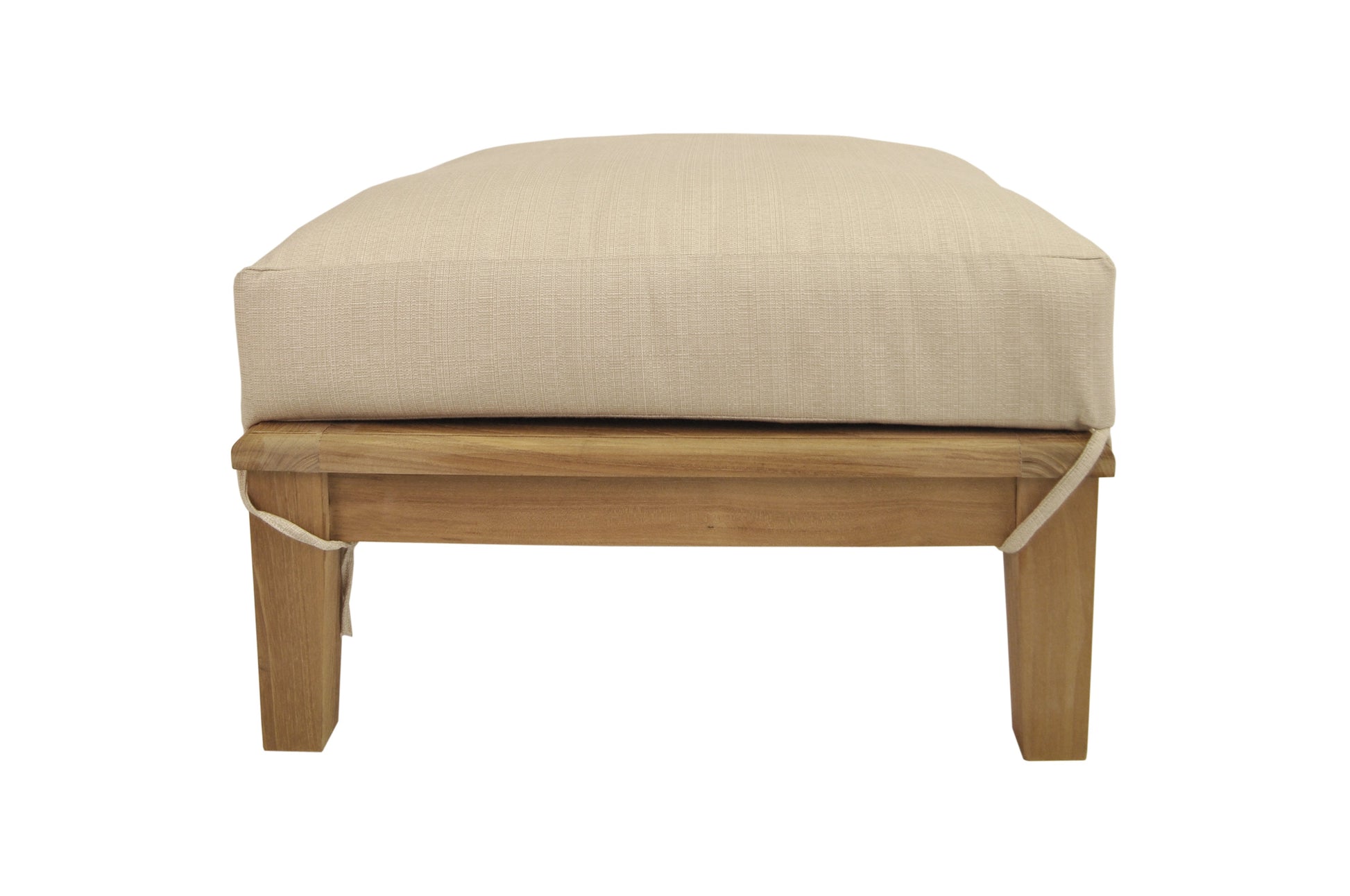 Elegant, comfortable, and strong enough to sit on, the Brianna Deep Seating Ottoman is the perfect addition to your yard. With choices from fabric pattern to the color, this ottoman includes a 27″ wide by 6″ thick beautiful Sunbrella All-Weather cushions that resist mildew, water, or discoloration. Made of kiln-dried Grade-A Teak wood, this Ottoman is the perfect patio furniture for weathering the outdoors through rain, hail, or shine. Mix and match with other pieces of the Brianna Deep Seating Collection set such as Armchairs, Sofas, Love Seats, coffee tables, side tables, to create your ideal deep seating conversation set.