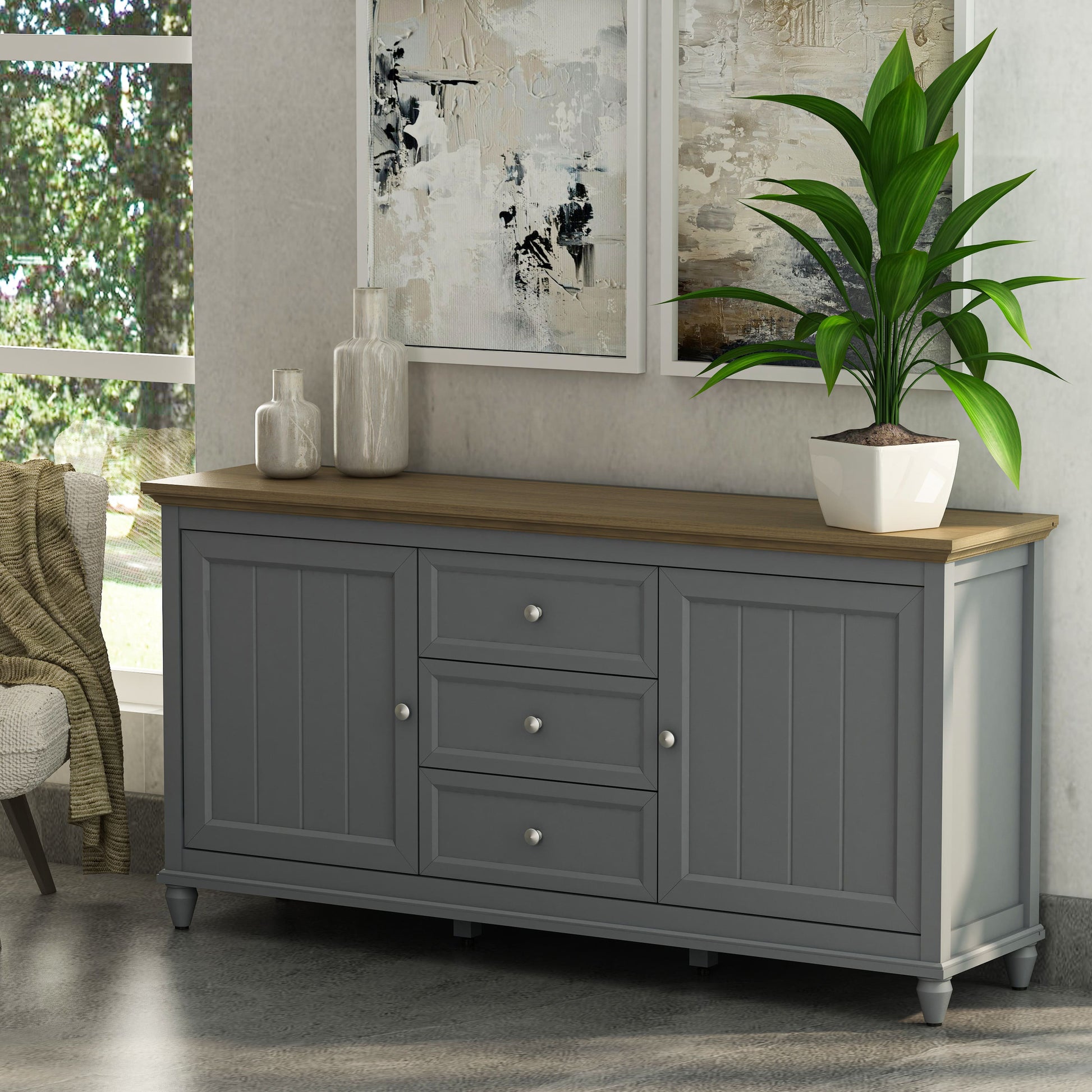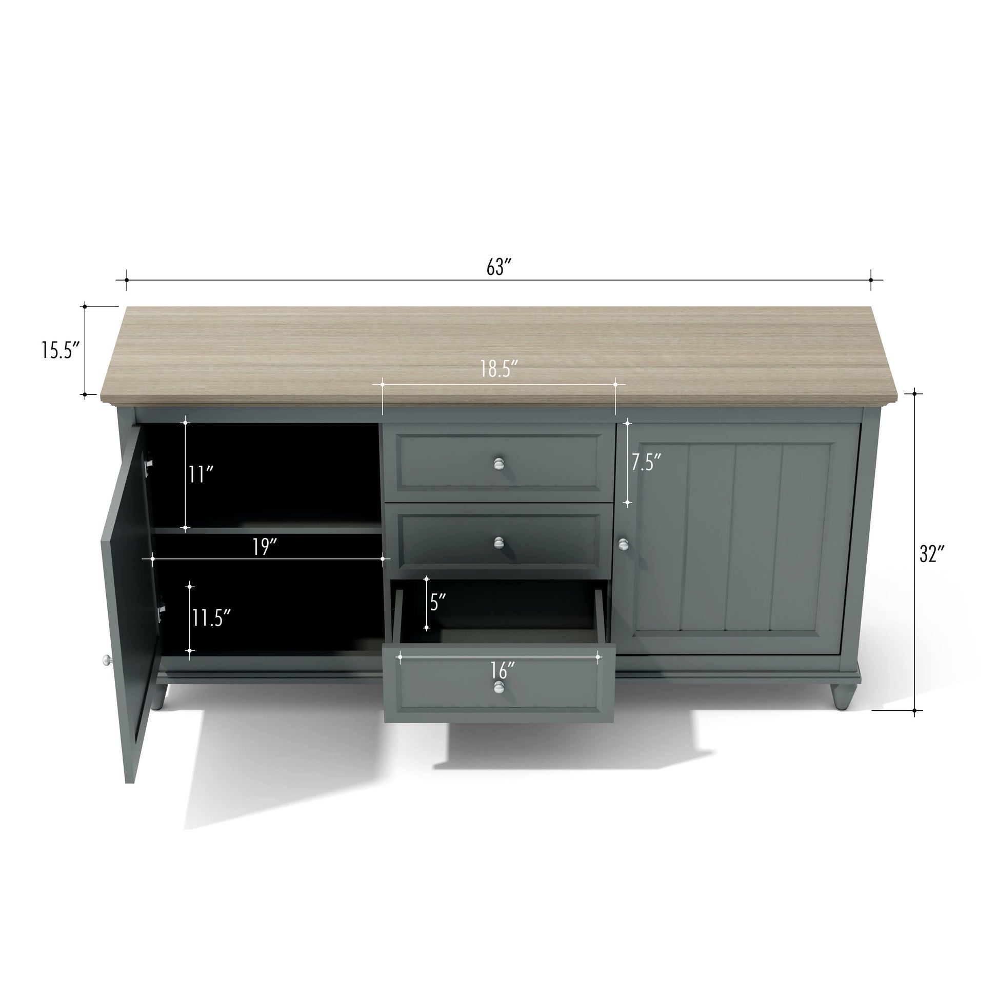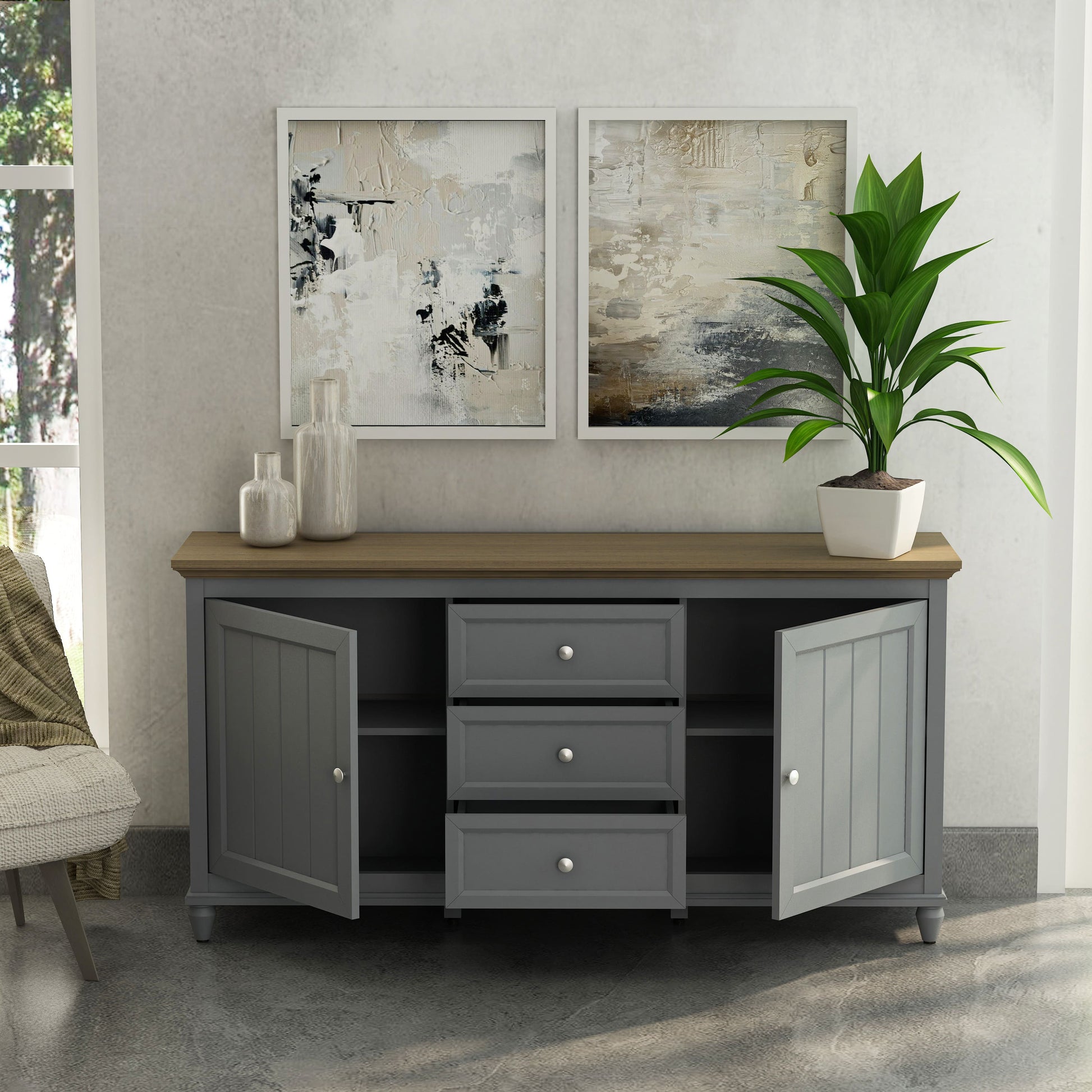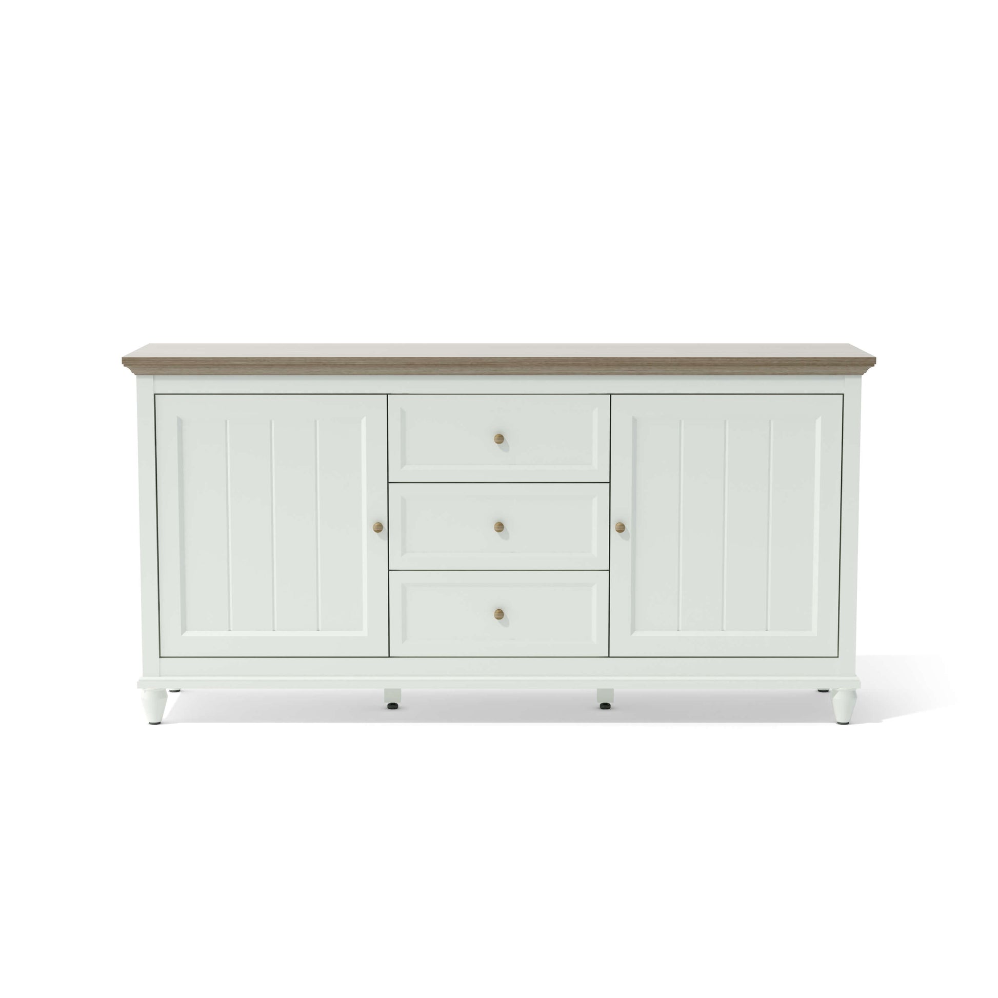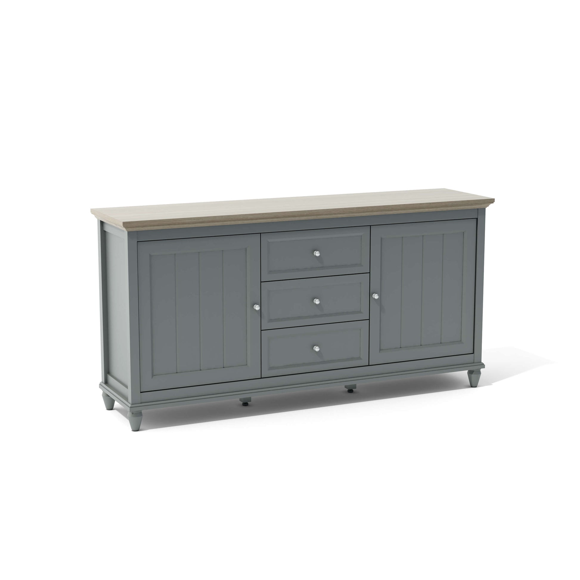 An exquisite sideboard and buffet credenza for the living or dining room, the Chenon Sideboard is perfect to place your portraits, vases, objects, and more. Beyond its captivating exterior more storage space can be found inside, perfect for storing your finest dishes and plates, utensils, linens and more. Featuring a soft close hinge mechanism, experience the luxury of smooth and quiet functionality. The soft-close hinge mechanism ensures that drawers and doors close gently, preventing slamming and preserving the longevity of this elegant piece. The perfect sideboard to be placed against any wall, decor, or area, elevate the look of your home with this functional and timeless piece.