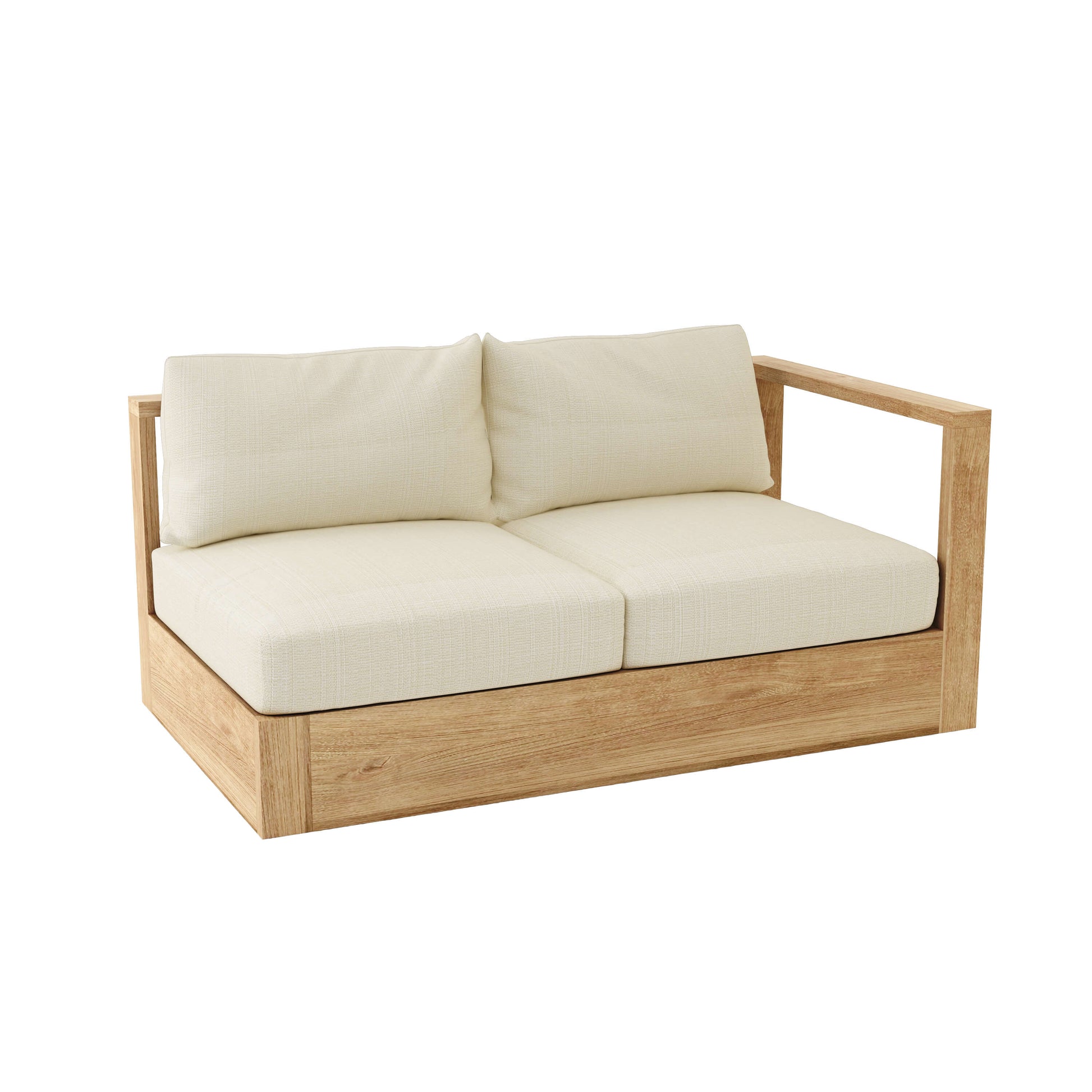 Made from premium solid teak, the Copacabana Left Loveseat is a contemporary modern design sofa perfect for the yard and outdoors. Pair this Copacabana Left Loveseat with the Right Loveseat to create an outdoor sofa that sits up to four, or add additional pieces from the Copacabana Set such as matching center, corner, armchair, coffee and side tables to create the ideal deep seating collection. Includes Sunbrella All-Weather cushion with choice of pattern and color options.