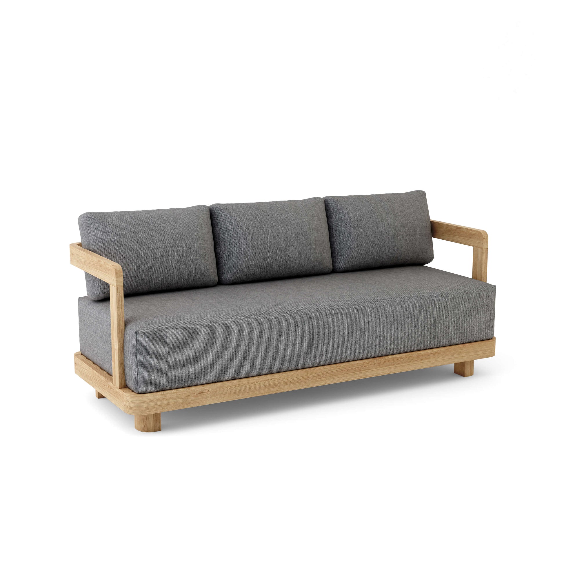 Constructed from premium grade teak wood that’s unfinished and sanded smooth and cushions with All-Weather Sunbrella Fabrics, it’s the perfect material for extended outdoor as well as indoor use. Cushions included with your choice of color and pattern option.