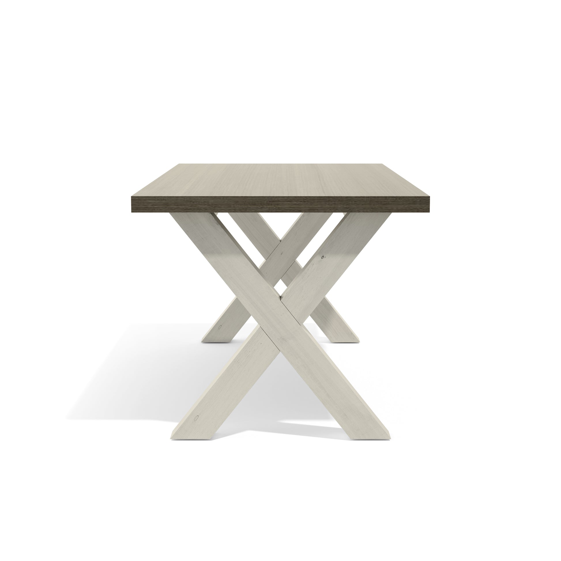 Elevate your dining experience with the Milwaukee Dining Table a stunning blend of style and functionality. Crafted to perfection this table is designed to be the centerpiece of your dining area offering ample space and classic design. Measuring 75 inches in length by 35.4 inches in depth, it seats 6-8 people, making it perfect for family gatherings, dinner parties, and everyday meals. The table features a sophisticated grey tabletop beautifully contrasted by off-white crisscross legs, a harmonious blend of colors that adds a touch of modern elegance to any dining space, effortlessly complementing a variety of décor styles.