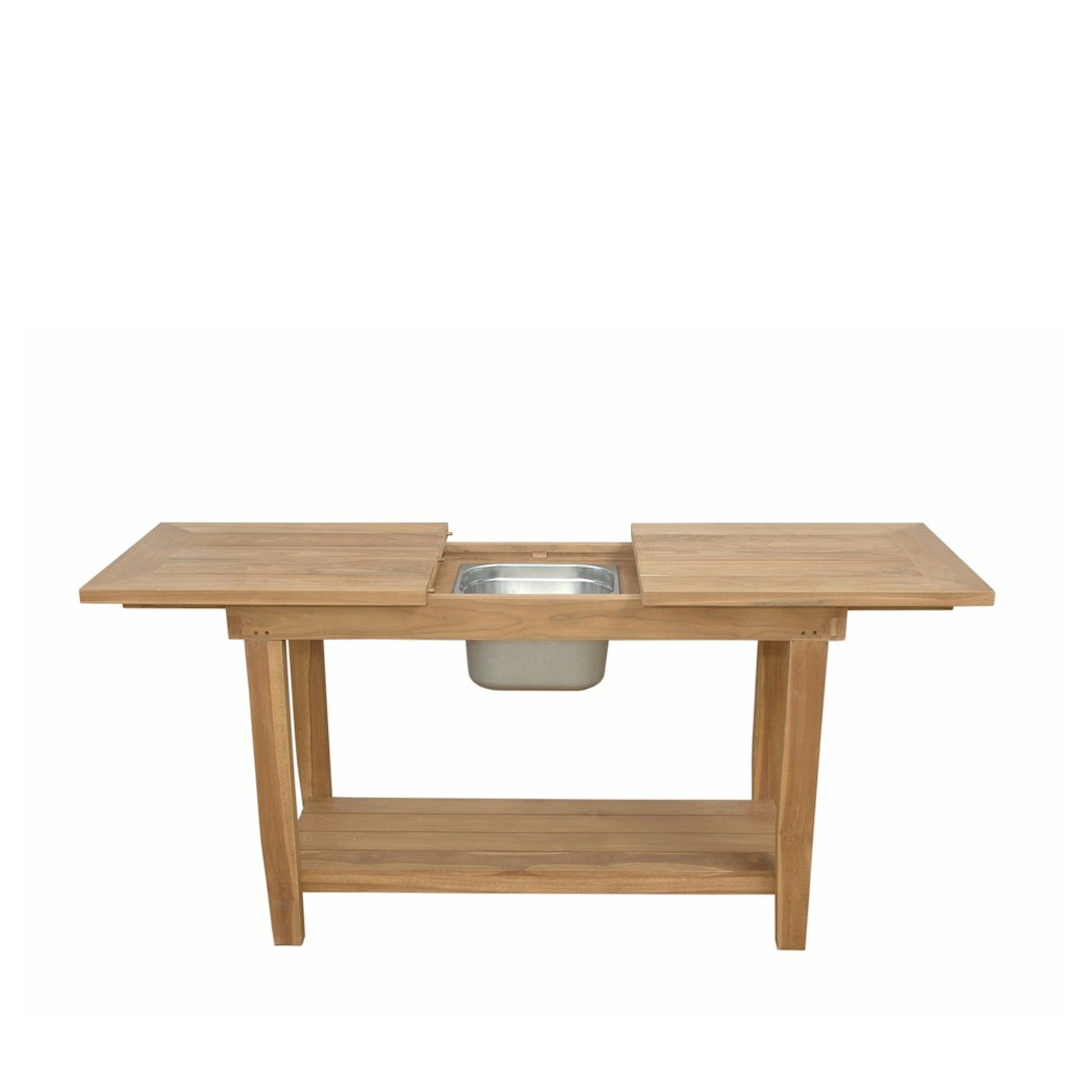 Nautilus Console Table is a very unique designs. Made of plantation kiln dried premium teak wood with wide-slats, mortise-tenon joinery, stainless steel container and large shelf for storage. Perfect for entertaining your family and friends at your backyard. Open by pulling the table top and use the stainless steel container for putting ice cube with bottles / cans or close it for convenience console table. The table comes knock down and easy to assemble.