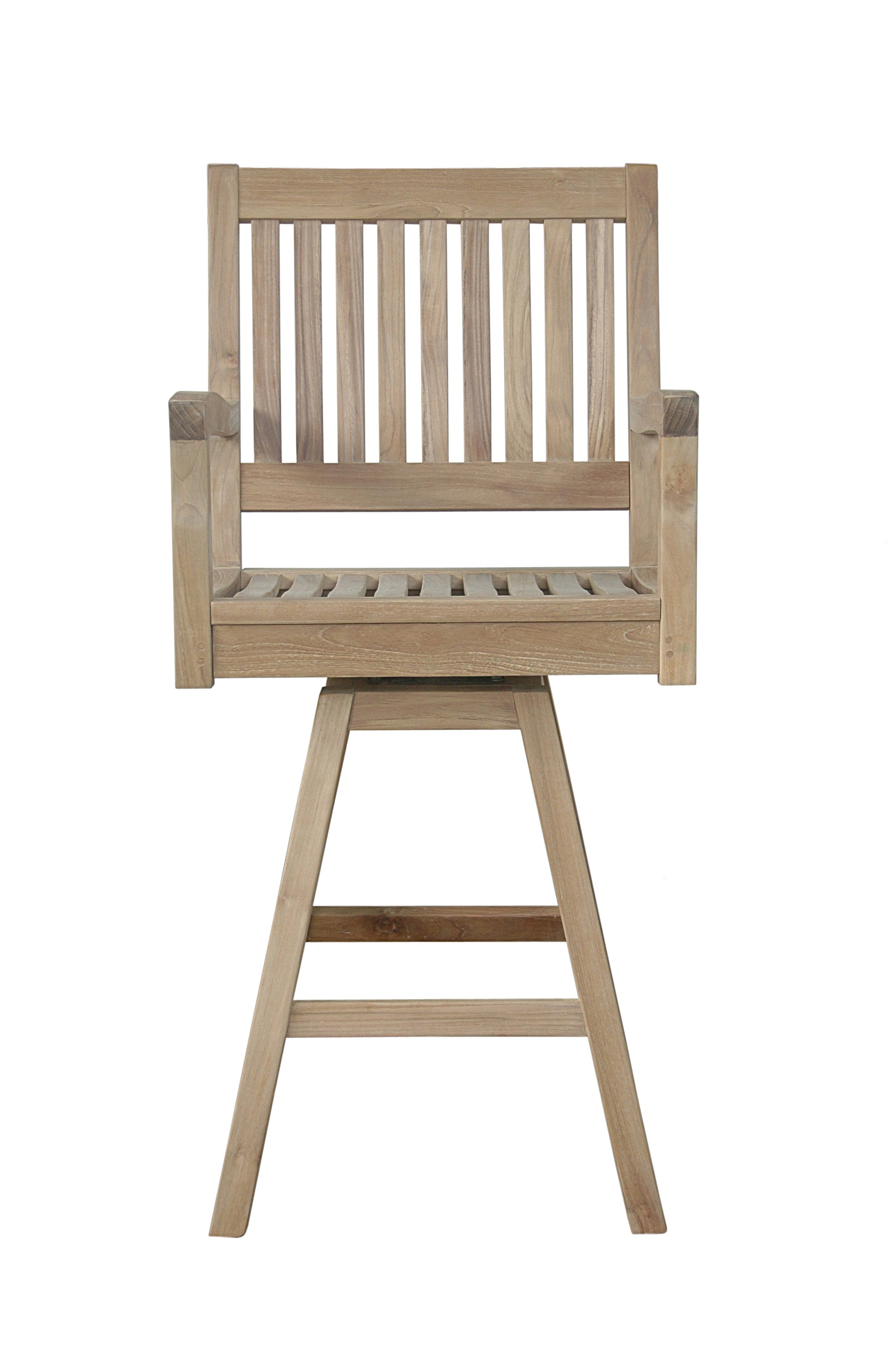 Enjoy your favorite pint of ale with this Rialto Swivel Bar Armchair. Made for a wide range of movement it features a full 360 degrees swivel that doesn’t snap back, but remains smoothly in place within any degree. The perfect complement to any high bar table, it can also be mix and matched with Anderson Teak’s numerous Bar Table Collections. Add Sunbrella All-Weather Cushions, a water repellent material that prevents mildew, mold, and discoloration for additional seating comfort. Constructed with Premium Teak wood sanded smooth, it is the perfect material for weathering the outdoors through rain, hail, or shine.